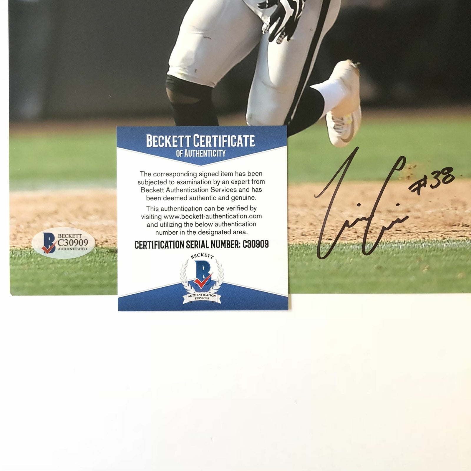 Up for sale is a professionally printed 8x10 photograph signed by TJ Carrie who notably played for the Oakland Raiders. The autograph of TJ on this photo was authenticated by a team of experts at Beckett Authentication Services so you can rest assured you are purchasing the real deal.