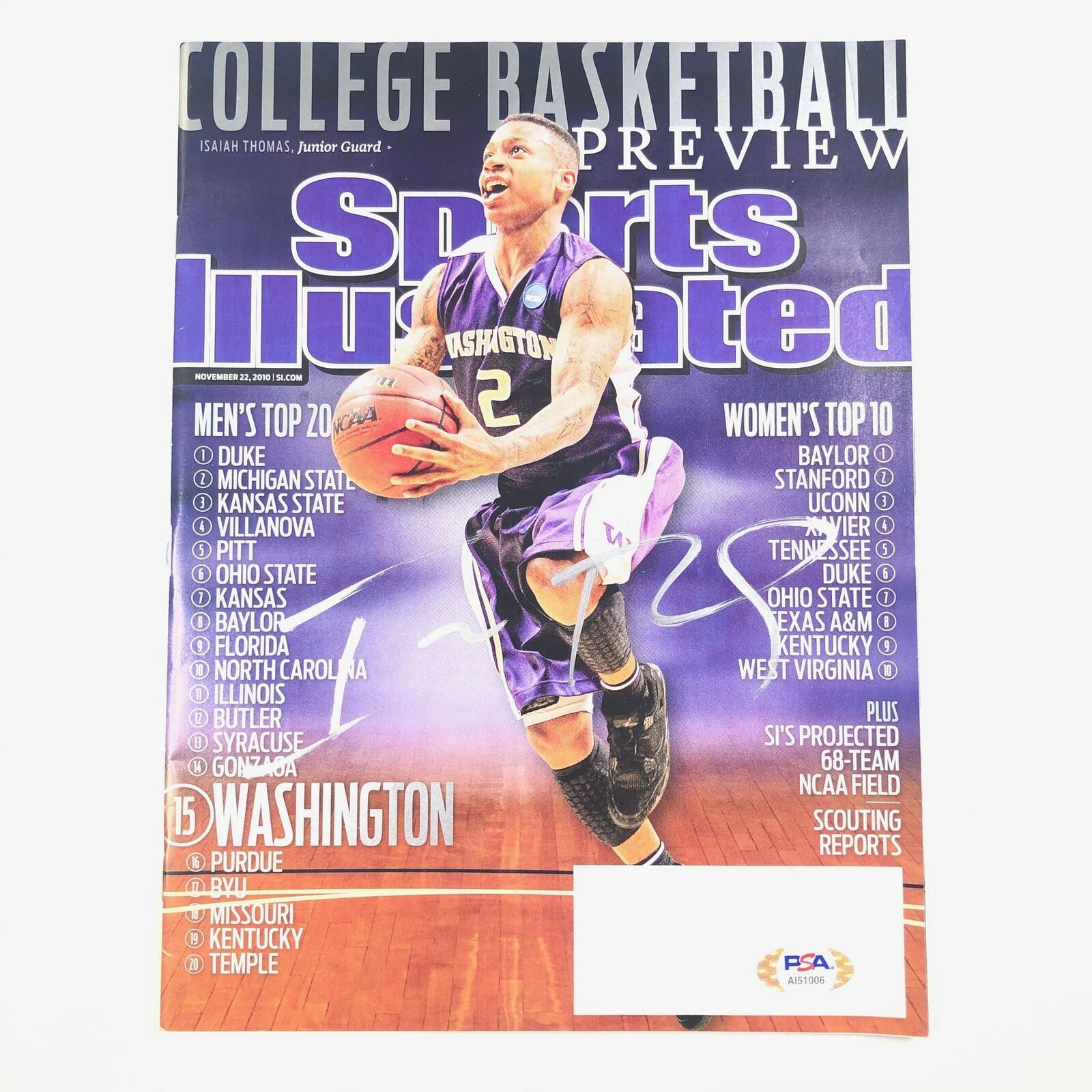Up for sale is a professionally printed SI Magazine signed by Isaiah Thomas, who notably played for the Washington Huskies. Autographed Photos |Autographed Balls |Autographed Jerseys |Autographed Cards |Other.