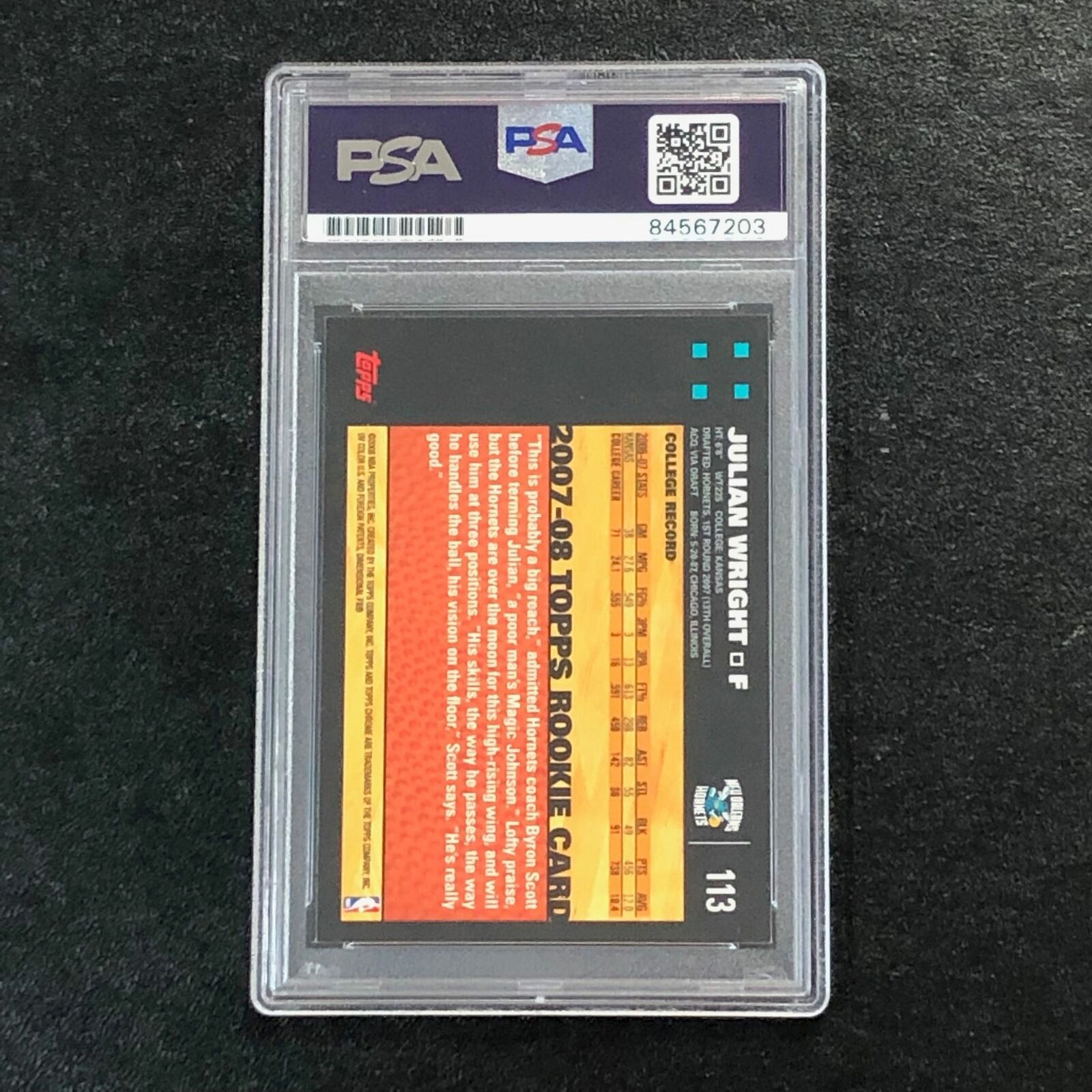 2007-08 Topps Chrome #113 Julian Wright Signed AUTO 10 PSA Slabbed Hornets
