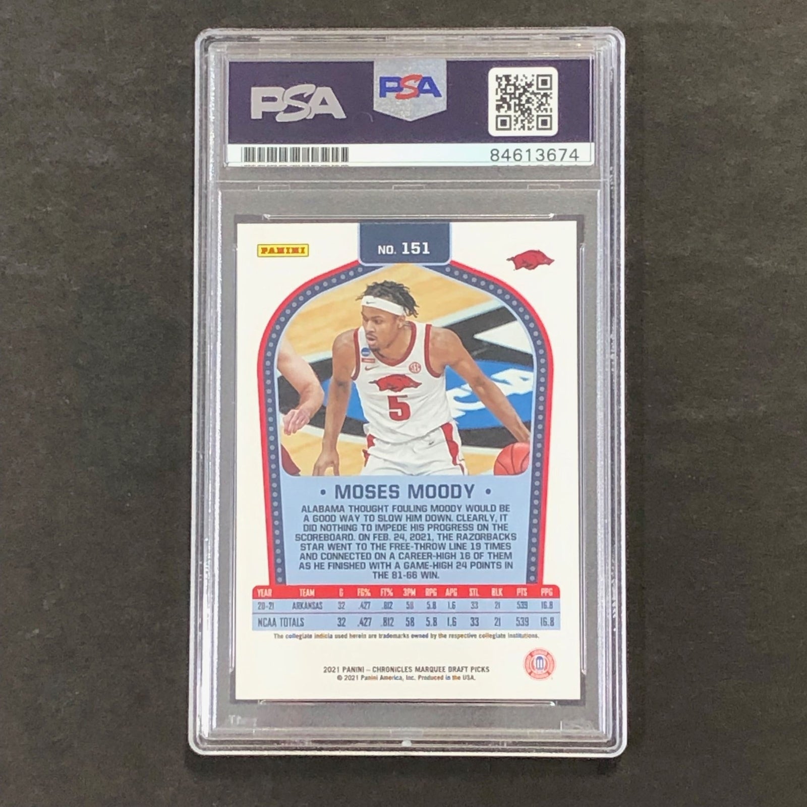 2021-22 Panini Marquee #151 Moses Moody Signed Card AUTO PSA Slabbed Arkansas Ra