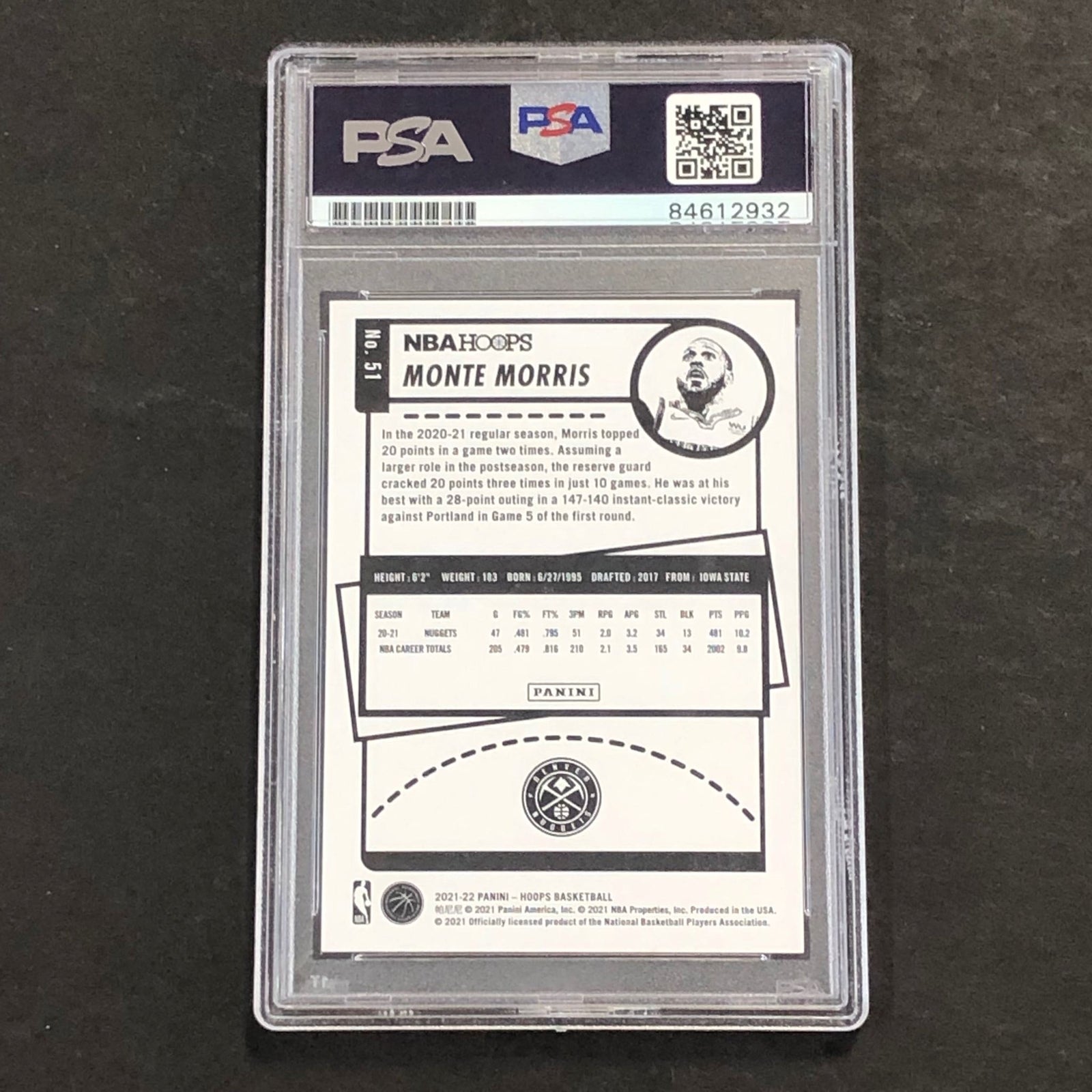 2021-22 NBA Hoops #51 Monte Morris Signed Card PSA Slabbed Nuggets