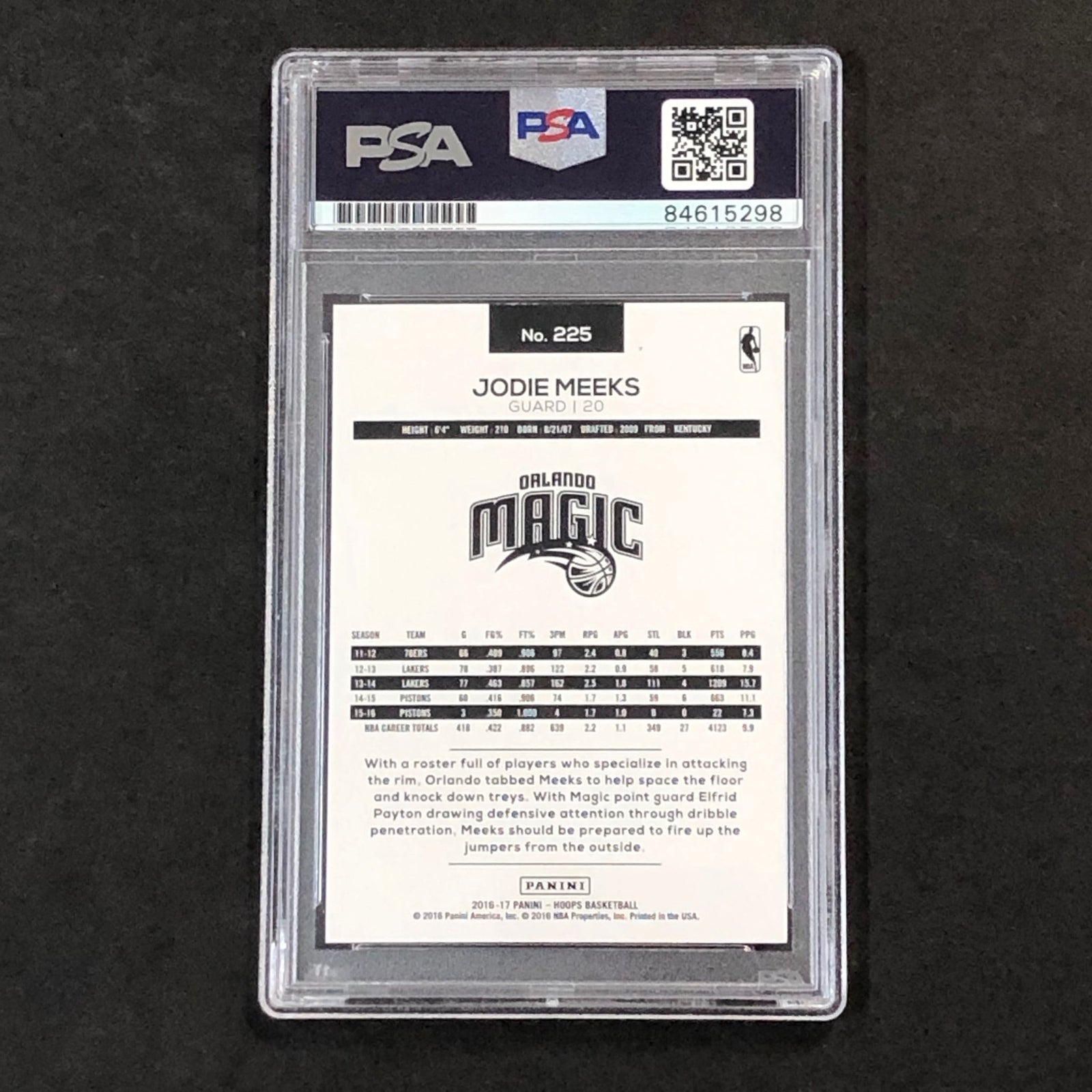 2016-17 NBA Hoops #225 Jodie Meeks Signed Card AUTO 10 PSA Slabbed Magic