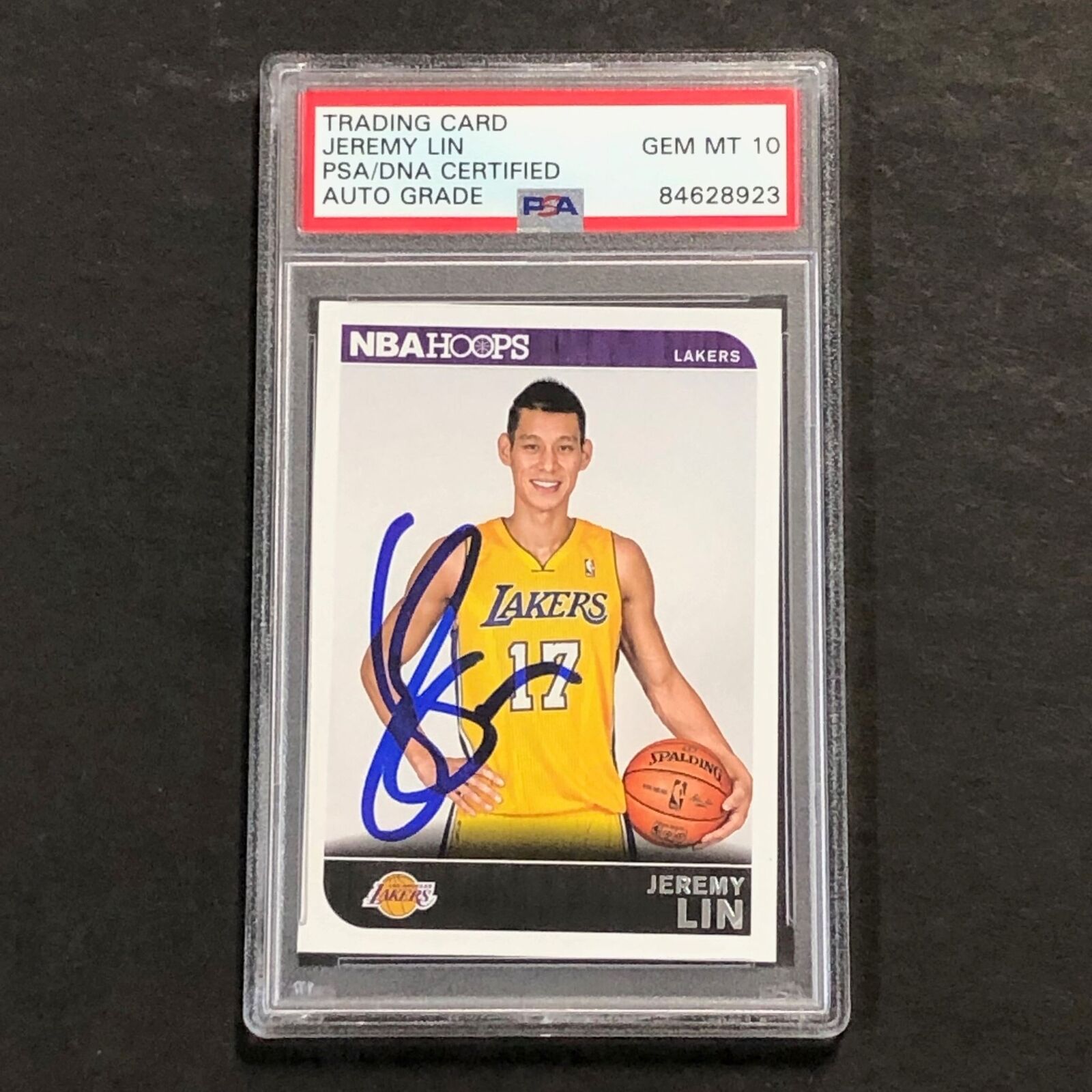 2014-15 NBA Hoops #191 Jeremy Lin Signed Card AUTO 10 PSA Slabbed Lakers