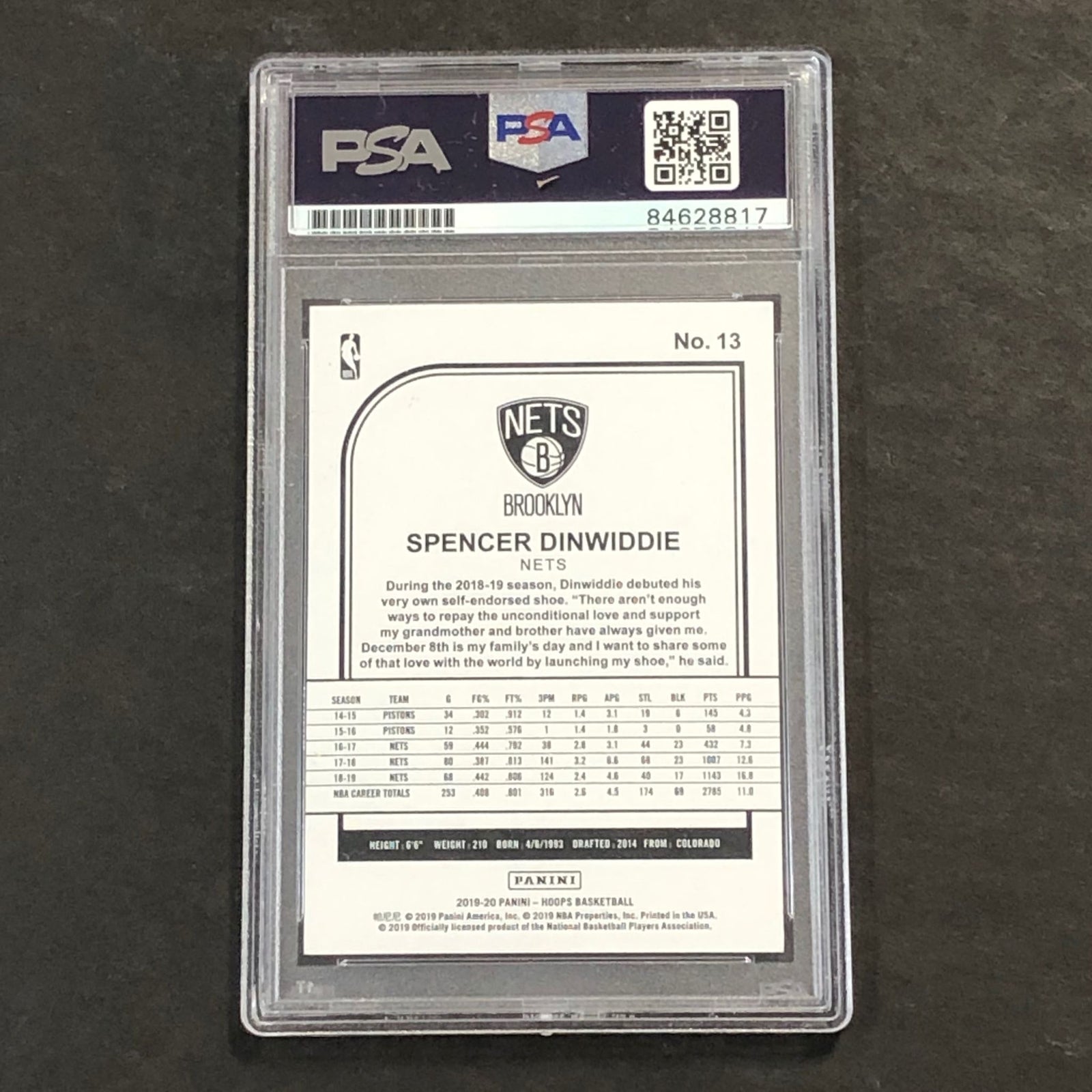2019-20 NBA Hoops #13 Spencer Dinwiddie Signed Card AUTO 10 PSA Slabbed Nets