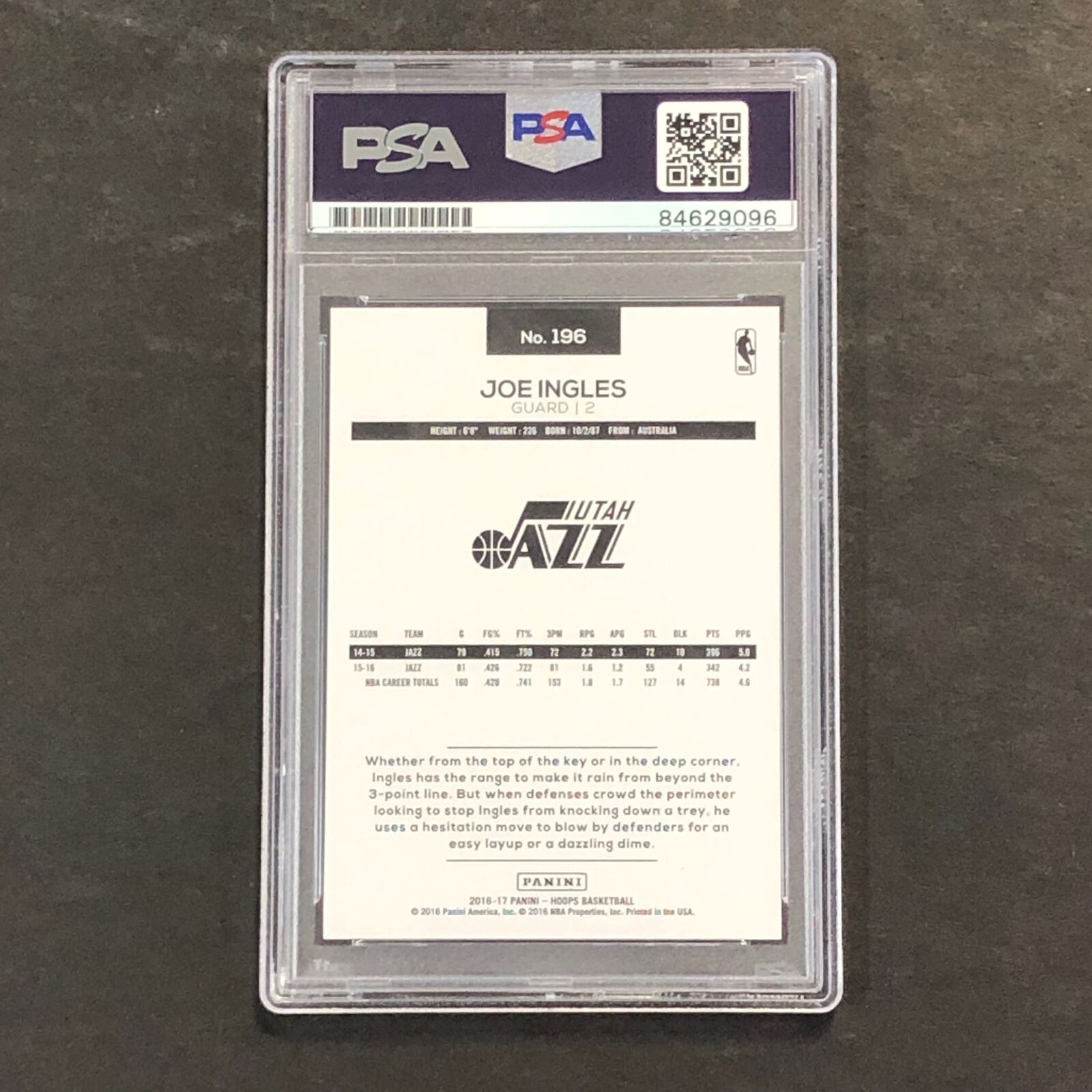 2016-17 NBA Hoops #196 Joe Ingles Signed Card AUTO GRADE 10 PSA Slabbed Jazz