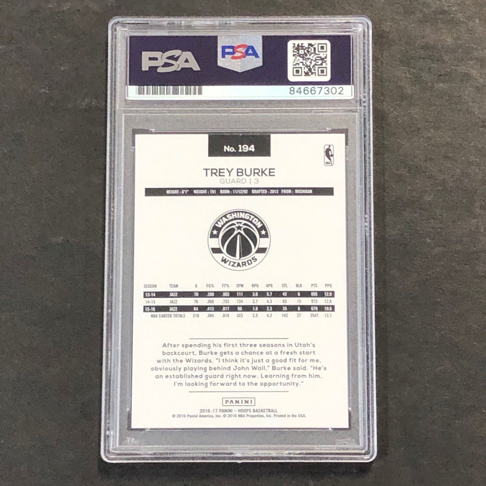2016-17 NBA HOOPS #194 Trey Burke Signed Card AUTO 10 PSA Slabbed Wizards