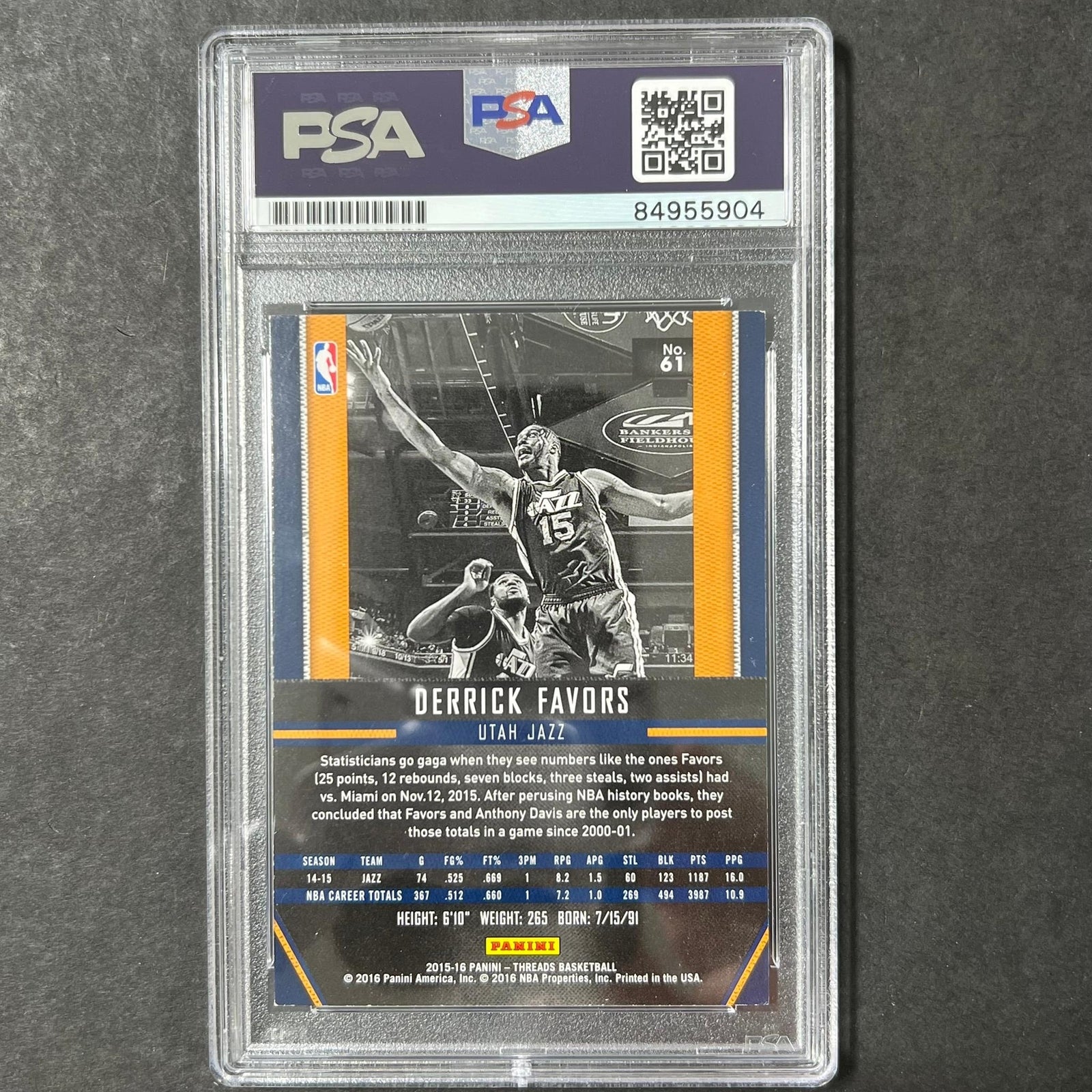 2015-16 Panini Threads #61 Derrick Favors Signed Card AUTO PSA Slabbed Jazz