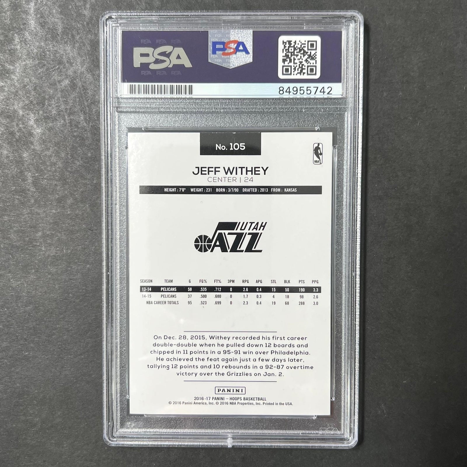 2016-17 Panini Hoops #105 Jeff Withey Signed Card AUTO PSA Slabbed Jazz
