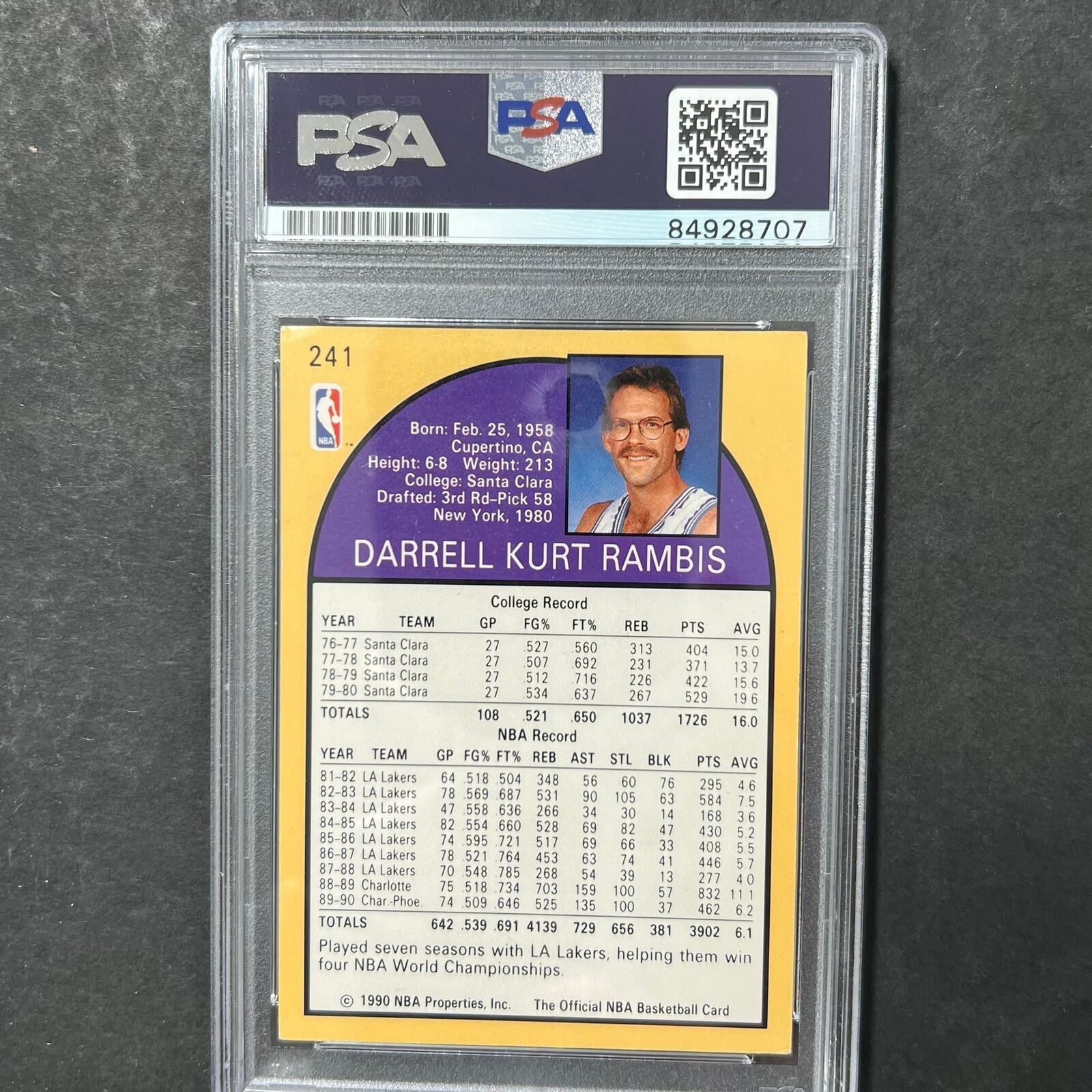 1990 NBA Hoops #241 Kurt Rambis Signed Card Auto PSA Slabbed Suns