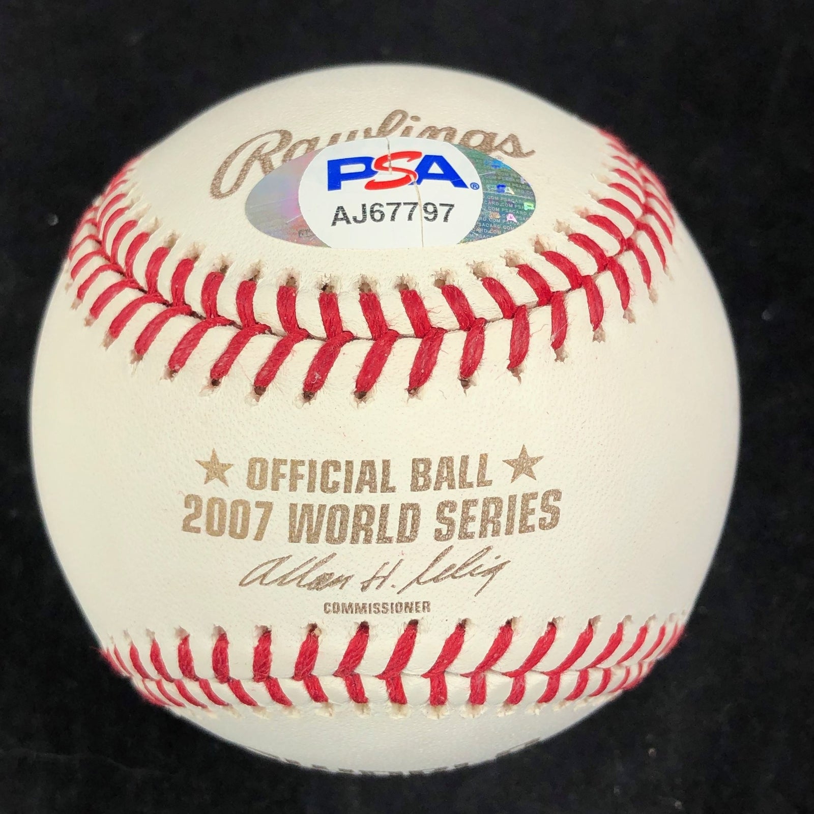 DUSTIN PEDROIA Signed 2007 WS Baseball PSA/DNA Boston Red Sox Autographed
