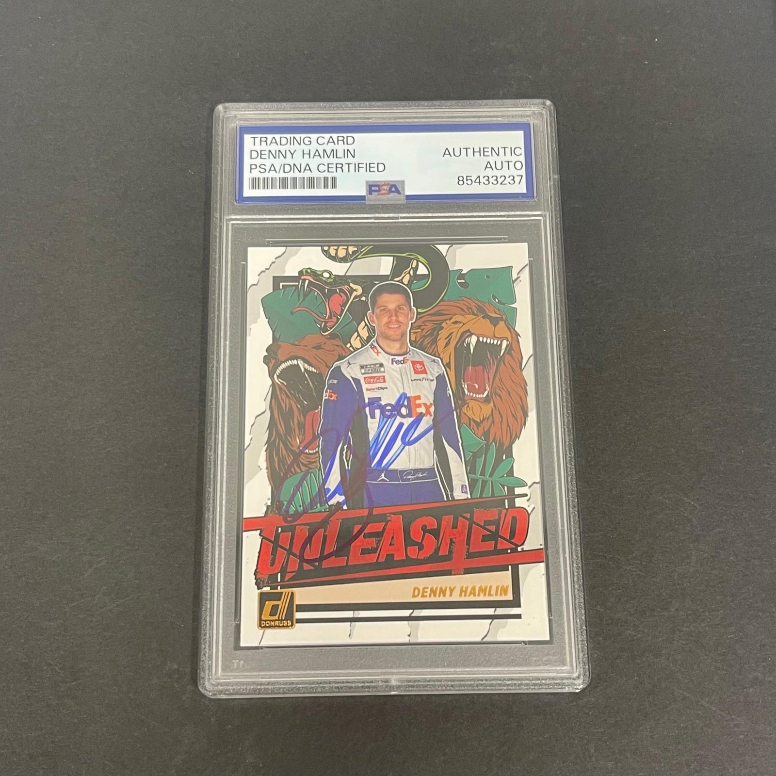 2023 Panini Donruss Racing Unleashed #U6 Denny Hamlin Signed Card PSA Slabbed Na