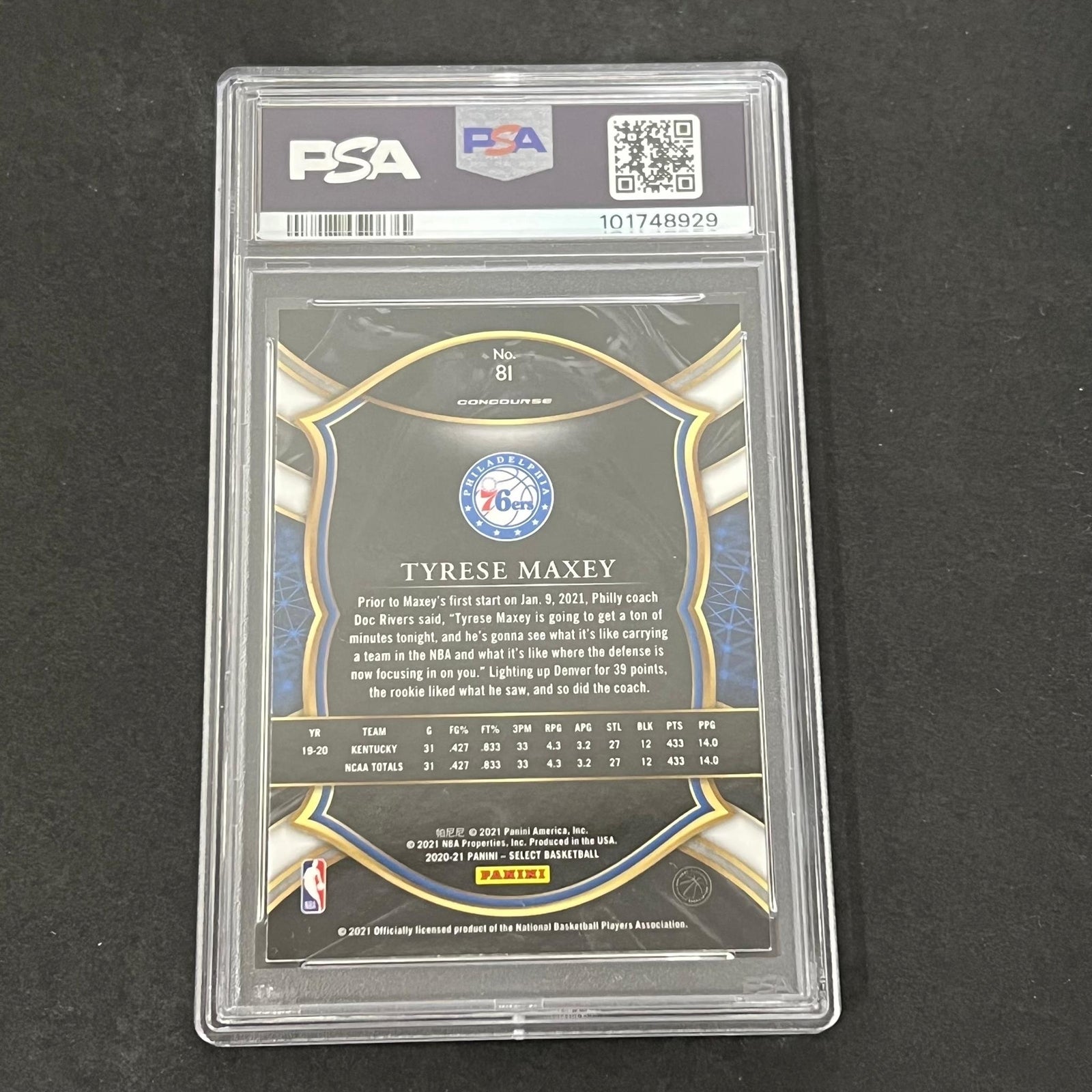 2020-21 Panini Select #81 Tyrese Maxey Signed Card AUTO PSA 76ers RC