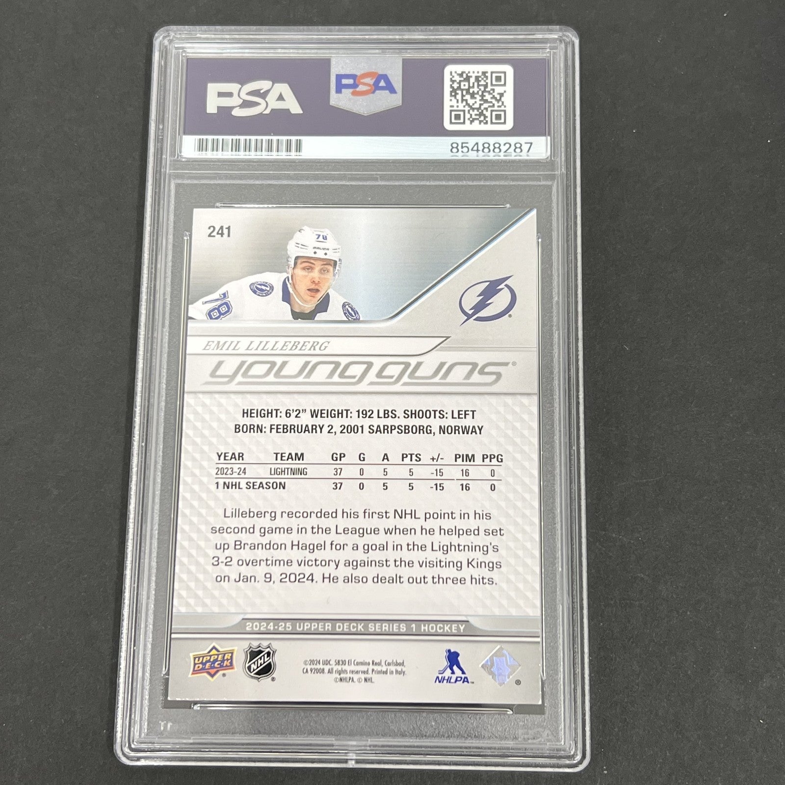 2024 Upper Deck Series One Hockey #241 Emil Lilleberg signed card PSA