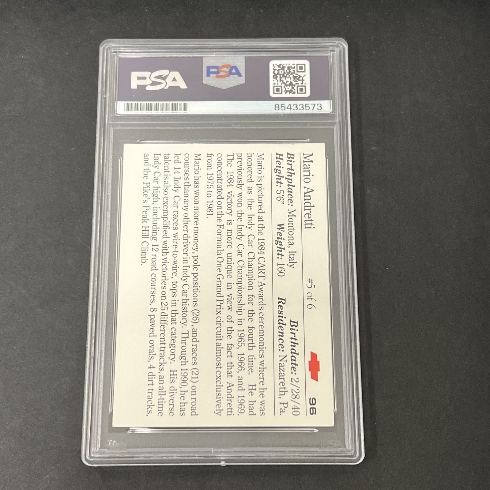 1991 Collect-A-Card #96 Mario Andretti Vette Set signed card PSA Auto 10