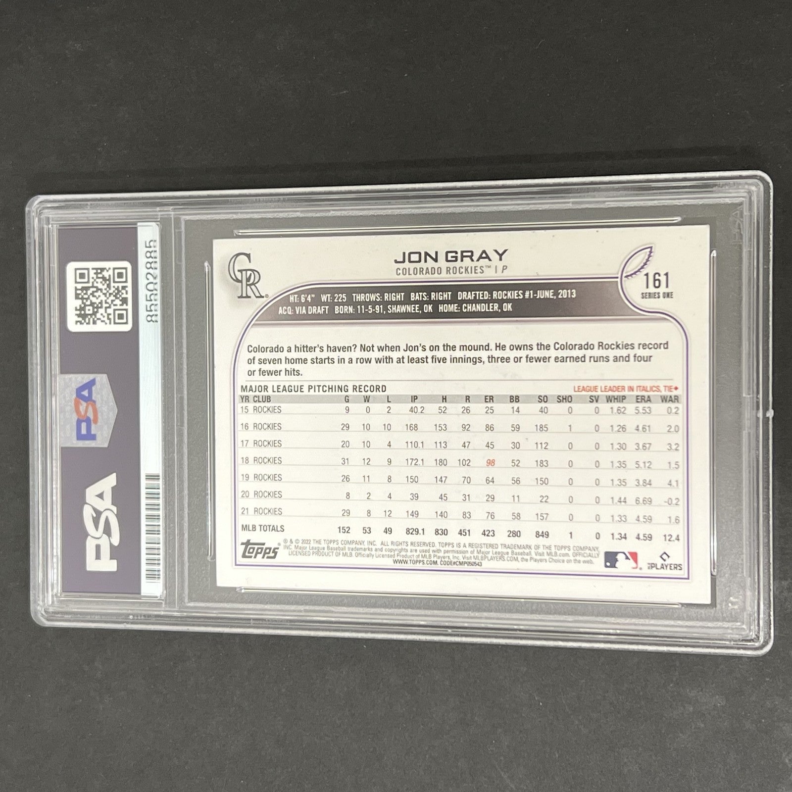 2022 Topps Series 1 #161 Jon Gray signed card PSA AUTO 10 Rockies