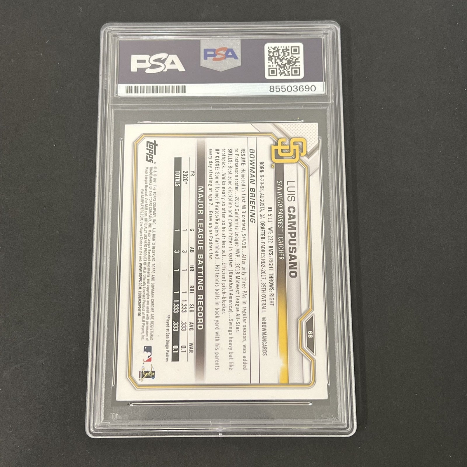 2021 Bowman Baseball #68 Luis Campusano Rookie signed card PSA