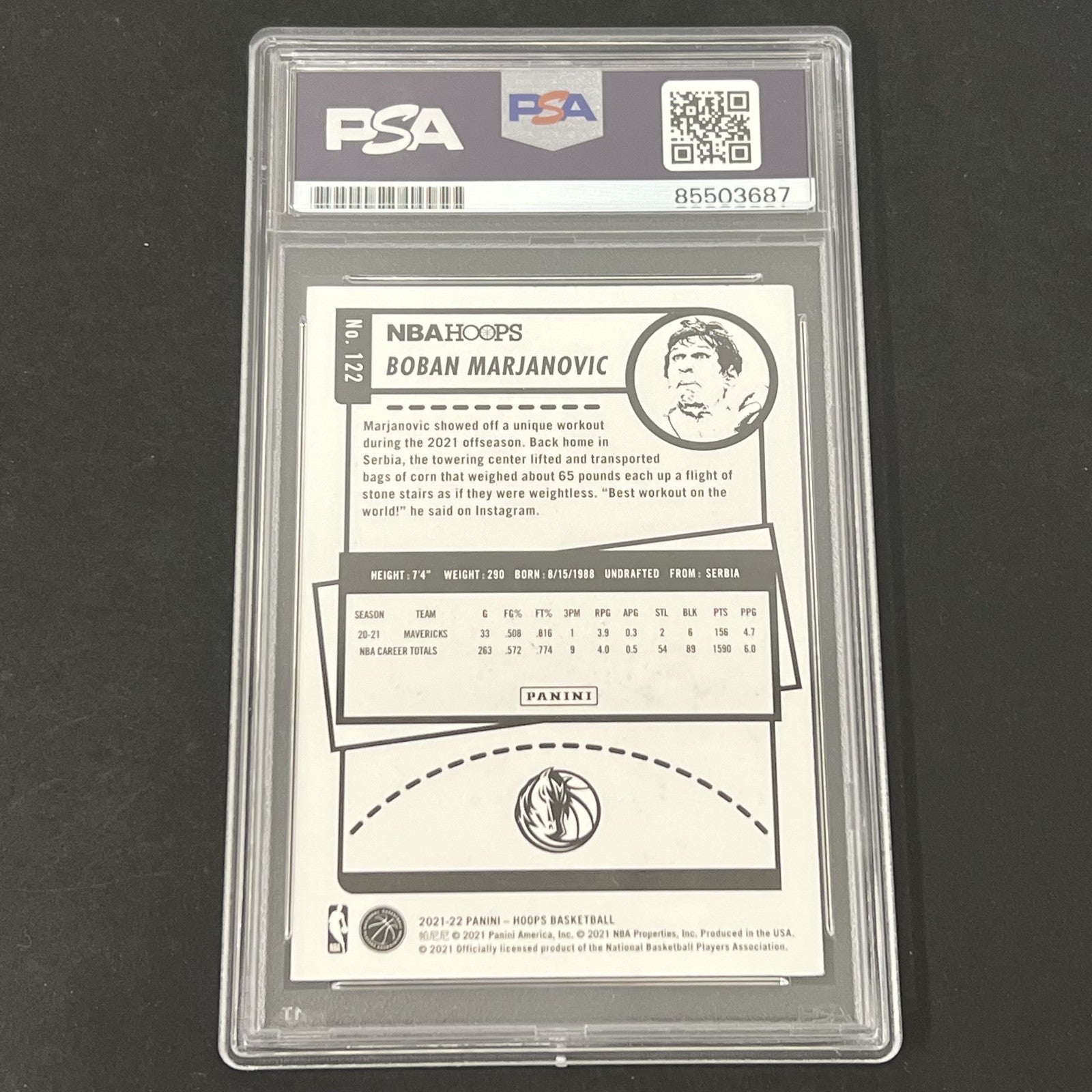 2021-22 Panini NBA Hoops #122 Boban Marjanovic signed card PSA